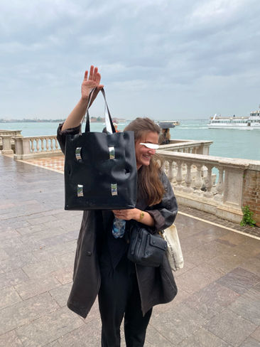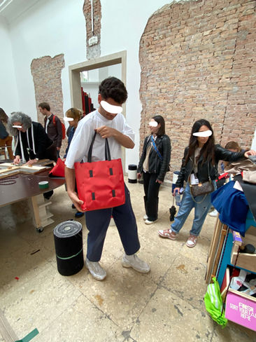 Dieses Taschen-Design habe ich im Rahmen eines Kooperationsprojekts mit dem Haus der Materialisierung für dies Architektur Biennale 2023 entworfen. Es ist eines von vier Modellen, die Besucher aus gebrauchten Materialien der letzten Kunst-Biennale selbst herstellen konnten.